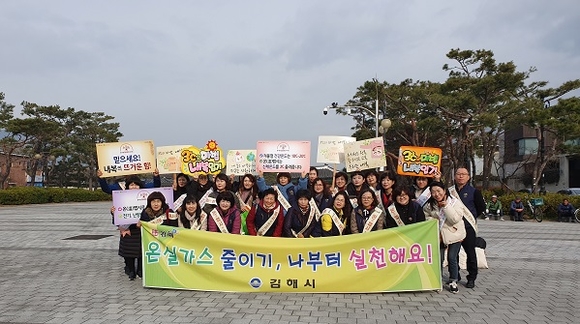 시는 17일 수로왕릉 앞 5일장에서 경남기후환경네트워크, 김해시기후환경네트워크 회원들과 함께 시장을 찾은 시민들을 대상으로 '온맵시로 따뜻한 겨울을 보내자'는 첫 거리 캠페인을 했다.