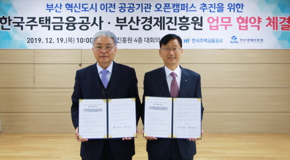 한국주택금융공사(주금공)와 부산경제진흥원이 ‘부산 혁신도시 이전 공공기관 오픈캠퍼스’ 추진을 위한 협약을 맺었다고 19일 밝혔다.