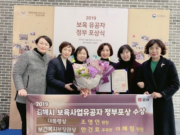 경남 김해시는 지난 18일 정부세종청사에서 열린 2019년 보육사업 유공자 정부 포상식에서 북부어린이집 조영인 원장이 대통령상을 수상했다고 밝혔다.