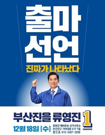 이어 류 전 처장은 “부산은 대한민국 제2의 도시란 말이 무색하게 활력을 잃고 있다. 부산진구는 서울의 종로에 비견되는 부산의 중심지다”며 “그러나 부산진구의 자신감을 이토록 쪼그라들게 만든 사람은 누구인가? 30년 동안 부산진구의 발전을 말로만 외치던 국회의원들은 다 어디로 가고 어디에 있나”라고 목소리를 높였다.