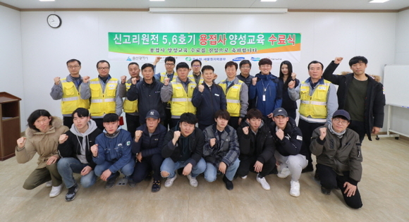 한국수력원자력 새울원자력본부는 20일 신고리 5,6호기 건설 현장 내 시공사 용접학교에서 교육생 13명을 포함한 한수원 및 시공사 관계자 30여 명이 참석한 가운데 용접사 양성교육 수료식을 개최했다고 밝혔다.