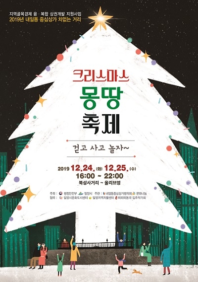 경남 밀양시는 오는 24, 25일 양일간 오후 4시부터 10시까지 내일동 중심상가 거리에서 '크리스마스 몽땅 축제'를 개최한다.