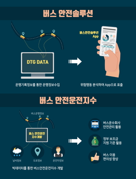 또한 축적된 버스 운전자 운행정보를 활용해 버스 안전운전에 대한 기준이 되는 버스 안전운전지수를 개발하고, 이를 버스 회사 안전관리, 정부 보조금 지원 기준 등에 활용할 계획이다.