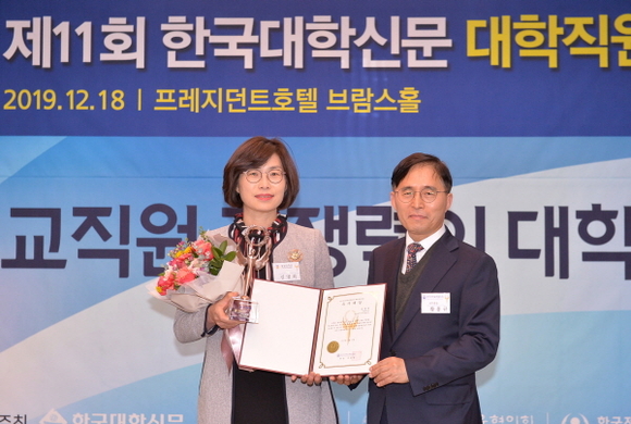 또 “오늘 이 상은 저의 노고와 노력에 대한 보상이 아니라 우리 학교 최강 학사관리팀에 주는 상이라고 생각한다”라며 “앞으로도 교육전문가라는 자부심으로 학사업무를 행정에만 국한하지 않고 학생과 교수를 위한 교육서비스에 학사 업무의 가치를 부여하며 업무를 해나갈 것”이라며 수상소감을 전했다.