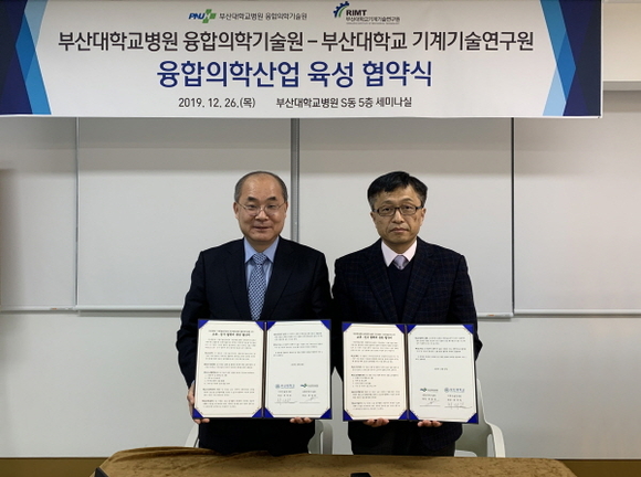 부산대학교 기계기술연구원과 부산대학교병원 융합의학기술원이 융합의학 과학기술 발전과 전문인력 양성을 위해 지난 26일 오후 부산대병원 융합의학기술원(S동) 5층에서 교육·연구 협력에 관한 협약을 체결했다고 27일 밝혔다.