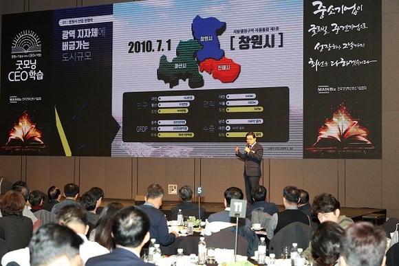 지난 12월 11일에 개최된 수도권 투자유치 설명회에서 수도권 소재 기업대표 500명이 참석한 가운데 허성무 창원시장이 직접 투자유치 홍보 프리젠테이션을 발표하여 참석자들의 깊은 공감과 호응을 이끌어 냈다.