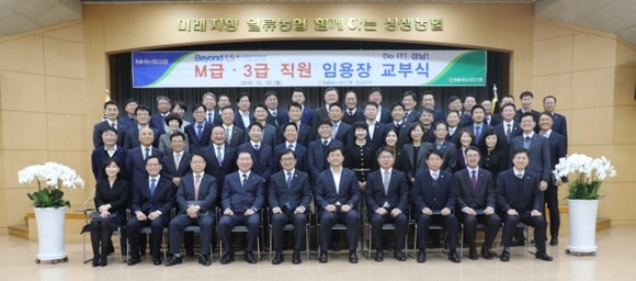 NH농협은행 경남본부는 30일 M급 및 3급 직원 정기인사에 따라 신규 보임한 사무소장과 승진 및 전입직원 등 53명에 대해 임용장을 수여했다고 밝혔다.