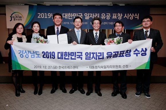 경남도는 지난 27일 한국프레스센터에서 개최한 대통령 직속 일자리위원회 주관 '2019년도 대한민국 일자리 유공기관 표창 수여식'에서 일자리 창출 및 개선 노력을 인정받아 일자리 유공기관 표창을 수상했다.