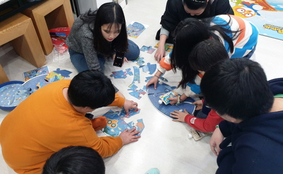 이날 부경대 디딤돌 강사단 학생 4명은 교리지역아동센터 소속 아동 25명을 대상으로 백화산호초 모형, 거북이 모형, 먹이사슬 활용 바다생물 종이접기 등 교구를 활용해 바다생태계 이해 및 바다쓰레기 청소 체험 교육 등을 진행했다.