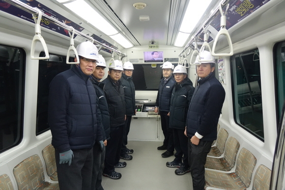 이날 실시한 현장안전점검은 경전철 영업운행 전 새벽 4시 15분 본선의 이상 유무를 점검하는 사전점검 열차에 직원과 함께 탑승해 점검을 실시했다. 또 경전철 차량기지 검수고, 종합관제실 등 현장을 방문해 안전점검을 실시하고 직원을 격려했다.