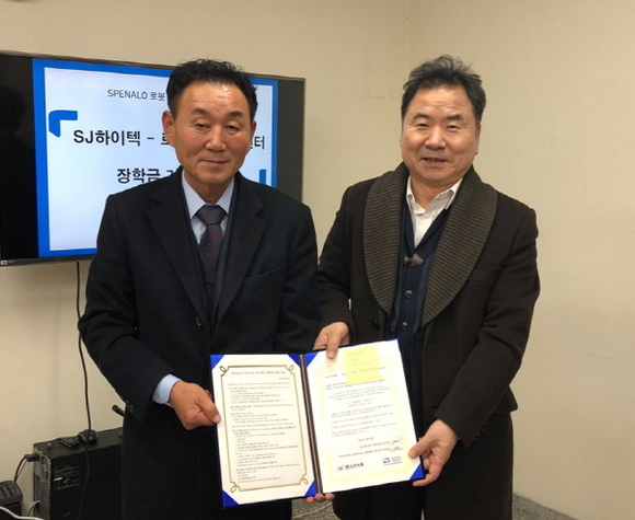 이날 유학현 대표는 장학금 출연과 인재 양성에 관한 협약을 맺고, 매년 1000만원을 기탁해 학기별 2명씩 연간 4명의 로봇 장학생을 지원하기로 했다.