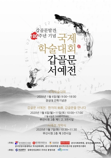 경성대학교 한국한자연구소 HK+사업단은 경성대와 부산시청 전시실에서 오는 2020년 1월 6~12일까지 ‘갑골문 발견 120주년 기념 국제학술대회 및 갑골문서예작품전시회’를 개최한다고 6일 밝혔다. 이번 행사는 경성대와 (사)세계한자학회, 중국사회과학원 고대사연구소, 중국은상문화학회, 중국갑골문연구센터, 중국안양사범대학 등이 공동 개최한다.