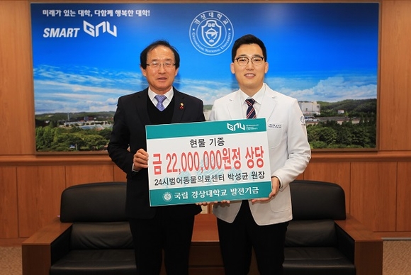 이어 “경상대학교 수의과대학은 경남·부산·울산 지역 유일한 수의과대학으로서 훌륭한 수의사 양성의 요람이 되고 있다”며 “앞으로 양산경상대학교동물병원 개원 등 날로 발전해 가는 데 조금이라도 보탬이 되고 싶었다”고 덧붙였다.