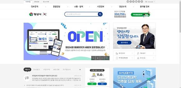경남 양산시 홈페이지가 새롭게 단장해 오는 13일 오픈한다.