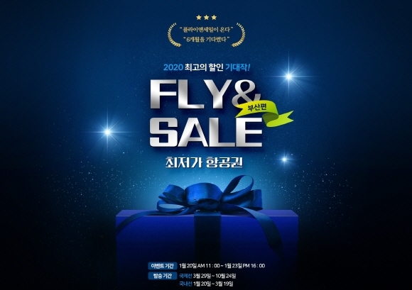 플라이앤세일 국내선 항공권 탑승 기간은 오는 20일부터 3월 19일까지며, 국제선은 3월 29일부터 10월 24일까지다.