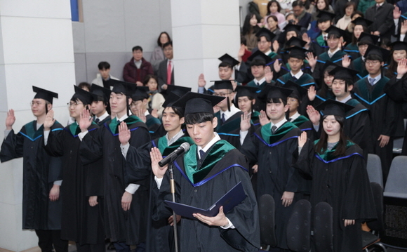 인제대학교 의과대학은 지난 14일 부산캠퍼스 대강당에서 ‘2019학년도 인제대학교 의과대학 히포크라테스 선서식’을 열었다고 16일 밝혔다. 이날 인제대 의과대학 36회 졸업생 99명은 히포크라테스 선서를 하고 인술을 펼칠 것을 다짐하고 졸업했다.