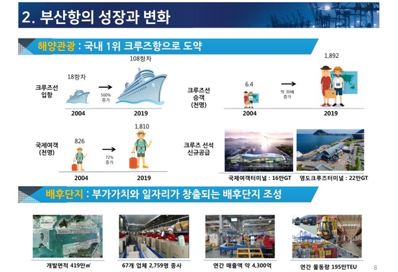 특히 부산항 북항재개발의 경우 오는 2022년 기반시설 완공을 목표로 차질없이 추진하겠다는 계획이다. 2단계 북항재개발, 우암부두, 다대부두 등 유휴·노후부두에는 새로운 문화 기능을 도입해 활력이 넘치는 공간으로 탈바꿈하겠다는 계획도 있다.