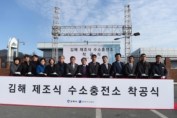 경남 김해시와 한국가스공사는 16일 오후 김해시 안동 한국가스공사 부산경남지역본부에서 조현명 김해시 부시장, 김형수 김해시의회 의장, 성영규 한국가스공사 안전기술부사장 등 양 기관 관계자와 시민 60여명이 참석한 가운데 김해 수소충전소 착공식을 개최했다.