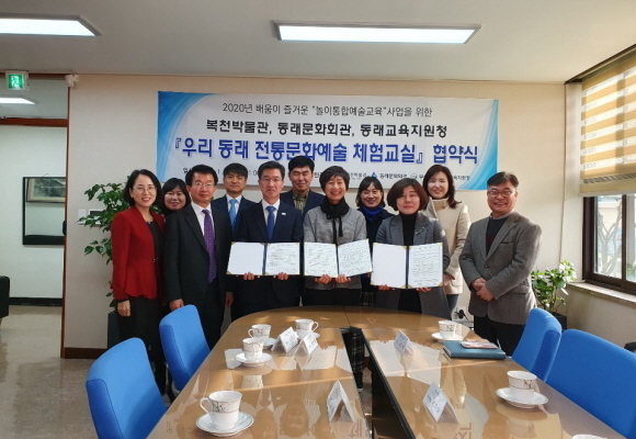 부산시동래교육지원청이 지난 16일 오전 본청에서 동래문화회관, 복천박물관과 ‘우리 동래 전통 문화예술 체험교실 협약’을 체결했다고 17일 밝혔다.