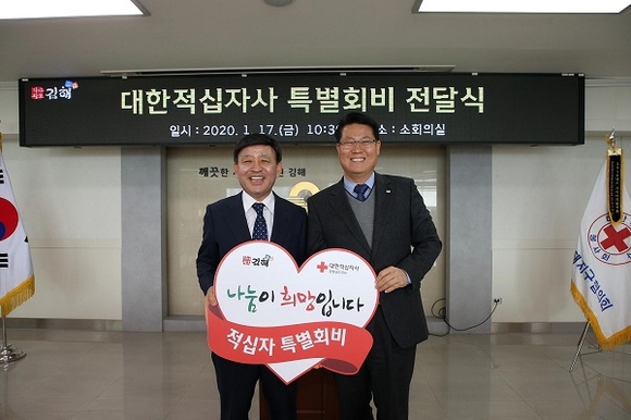경남 김해시는 17일 시청 소회의실에서 열린 대한적십자사 김해지구협의회 첫 정기총회에 참석해 대한적십자사 경남지사에 적십자 특별회비 300만원을 전달했다고 밝혔다.