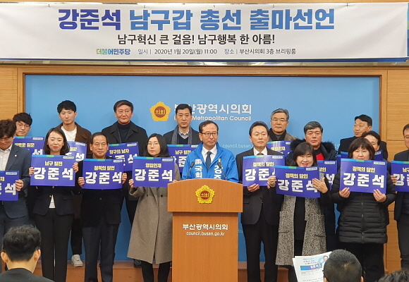 강준석 전 차관은 20일 부산시의회 브리핑실에서 기자회견을 열고 제21대 국회의원 선거(총선) 부산 남구갑 지역구 출마를 선언했다.