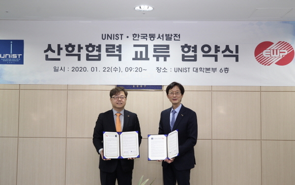 한국동서발전은 UNIST(울산과학기술원)와 22일 UNIST 본관에서 ‘신재생에너지 전문 인재 양성을 위한 산학협력 협약’을 체결했다고 밝혔다.