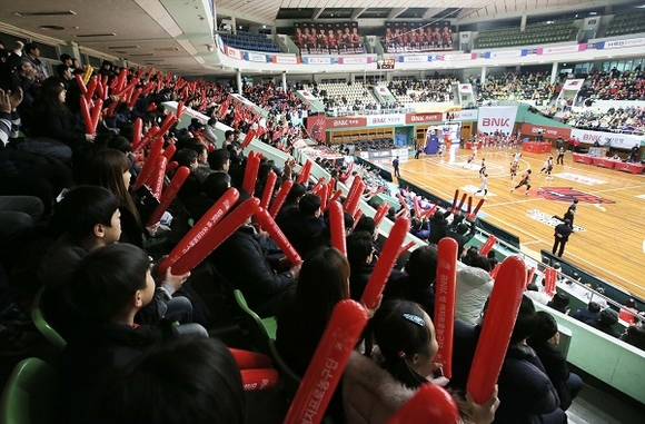 특히 홈팀인 BNK썸여자프로농구단 선수들의 역동적인 플레이가 나올 때면 환호하고 슛이 골대를 벗어날 때면 아쉬워했다.