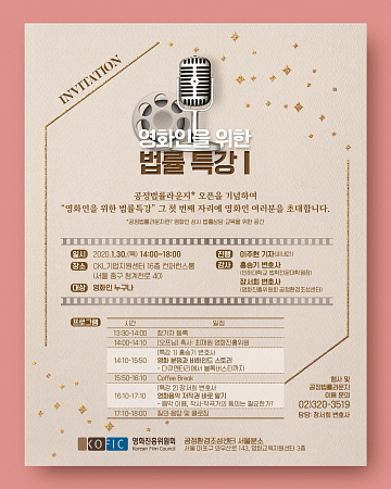 이번 영화인을 위한 법률 특강은 모든 영화인을 대상으로 한 오픈 강연으로 전화 또는 이메일로 사전 등록 신청을 하거나 당일 오후 1시 30분~2시까지 현장접수하면 입장할 수 있다.