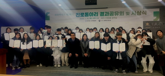 동아대학교 교육혁신원 진로개발센터는 2019학년도 2학기 ‘진로동아리 결과공유회 및 시상식’을 성황리에 개최했다고 23일 밝혔다. 이날 동아대 승학캠퍼스에서 열린 행사에선 진로동아리 17팀 86명 수료, 우수 동아리에 대한 시상이 진행됐다.