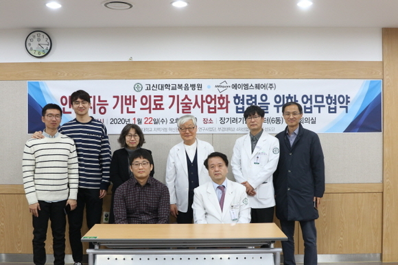 고신대학교복음병원은 지난 22일 오후 부경대학교 4차 산업 혁명 혁신선도단, 고신대학교 지역거점 혁신형 의사과학자 연구사업단과 함께 에이엠스퀘어(주)와 인공지능 기반 의료 기술사업화에 관한 업무협약을 장기려기념 암센터 대회의실에서 체결했다고 23일 밝혔다.