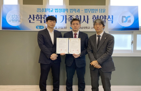 경남대학교 법학과는 지난 28일 법무법인 담윤(대표변호사 최종원, 박세영)과 산학협력 가족회사 협약을 체결했다고 29일 밝혔다.
