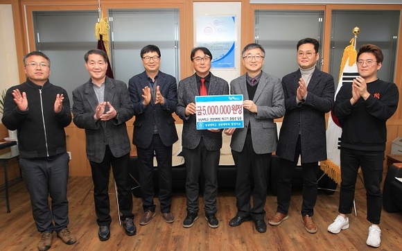 발전기금 전달식은 29일 오후 5시 경영대학원장실에서 윤한성 학장을 비롯해 경영대학원 관계자와 유광호 회장, 하종규 총무 등 10여 명이 참석한 가운데 열렸다.