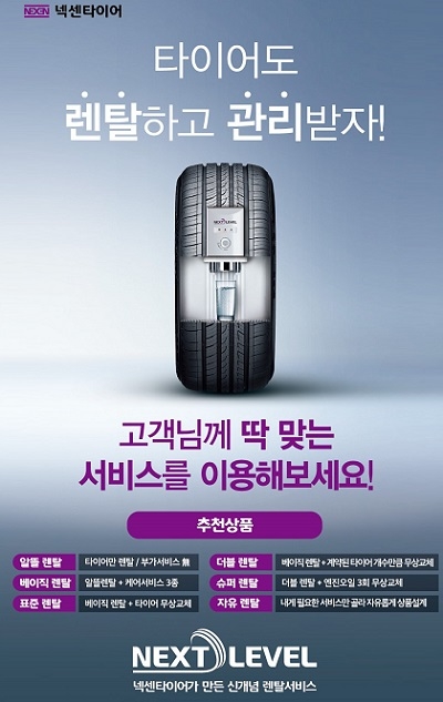 '넥스트레벨'은 넥센타이어가 업계 최초로 실시한 타이어 렌탈 서비스로 타이어를 렌탈하고 정기적인 타이어 점검 및 차량 관리를 제공받을 수 있는 서비스다.