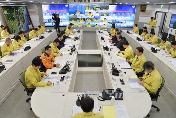 부산시가 3일 오전 10시 30분 시장, 구청장, 군수, 부시장, 실·국장 등이 참석하는 비상대책회의를 열고 신종 코로나바이러스 감염증 비상대응체제를 확대한다고 발표했다.