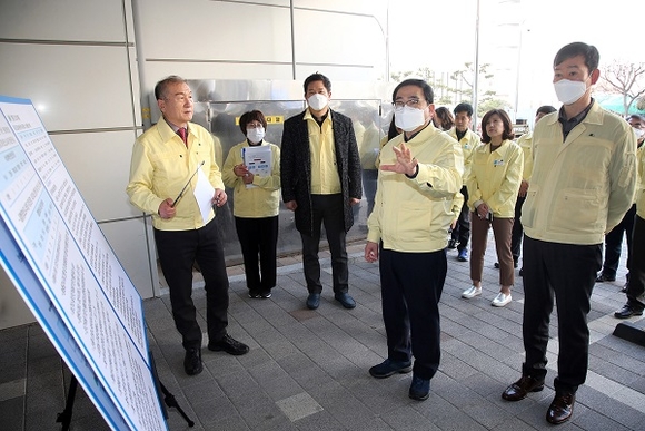 허성무 창원시장이 신종 코로나바이러스 감염증과 관련, 선제적 대응을 위해 주말인 2일 오전 관내 3곳의 보건소와 열화상카메라가 설치된 창원종합버스터미널, 마산역 등 다중이용시설 등을 방문해 검역상황을 직접 챙겼다.