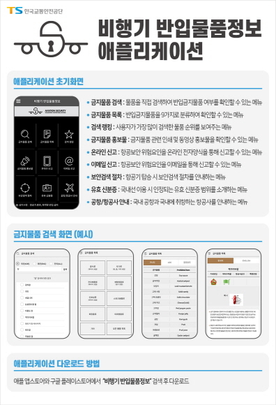 한국교통안전공단은 4일 행락철 등 주요 관광 수요 증대를 대비해 대국민을 대상으로 하는 ‘비행기 반입물품정보’ 애플리케이션(이하 앱)을 출시한다고 밝혔다.