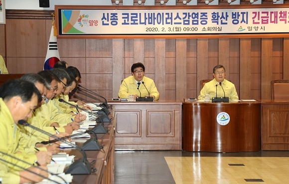 경남 밀양시는 3일 시청 소회의실에서 신종 코로나바이러스 감염증 확산 방지를 위한 긴급 대책회의를 열었다.