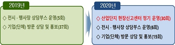올해부터는 산업단지 권역별 ‘현장신고센터 정기 운영’ 프로그램을 신설해 개별 기업이 조합, 협회를 통하지 않고 산단 관리 지소에서 규제 애로사항을 편리하게 상담받을 수 있도록 한다.