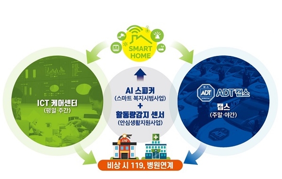 AI스피커를 함께 지원해 홀로 사는 노인의 말벗이 되도록 하고 생활정보를 안내하는 등 정서적 서비스도 지원한다.