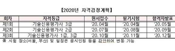 올해 첫 시험은 기술신용평가사 3급으로 오는 4월 25일 서울과 부산지역에서 시행된다. 원서는 오는 4월 1일부터 15일까지 기술신용평가사 자격검정 공식 사이트에서 접수하면 된다.