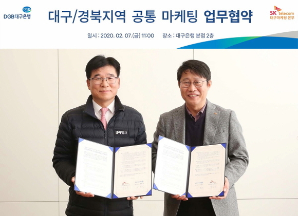 DGB대구은행과 SK텔레콤 대구·경북본부는 7일 오전 본점에서 대구·경북 기반 공동마케팅을 위해 협력하는 업무협약을 체결했다고 밝혔다.