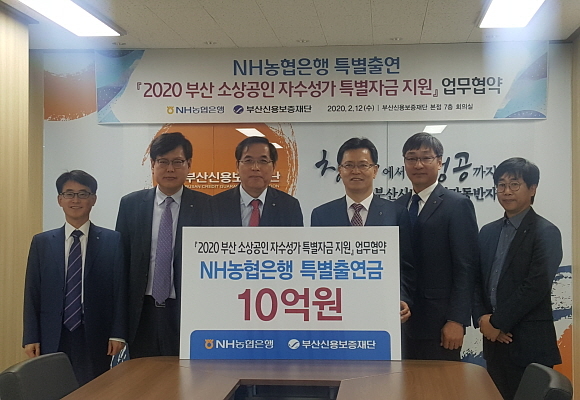 부산신용보증재단(신보재단)과 NH농협은행이 12일 ‘2020 부산 소상공인 자수성가 특별자금’ 협약을 맺고 총 150억원 규모의 신용보증을 통한 자금 대출을 지원한다고 밝혔다.
