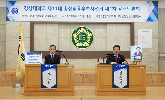 경상대 제11대 총장임용후보자 선거에는 기호 1번 권진회 교수(공과대학 기계항공정보융합공학부)와 기호 2번 권순기 교수(공과대학 나노·신소재공학부) 등 2명의 후보가 출마했다.