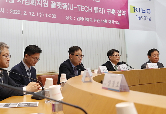 기술보증기금(기보)이 지난 12일 경남도 김해시 소재 인제대학교에서 인제대학교와 ‘대학 기술사업화 지원 플랫폼(U-TECH밸리) 구축을 위한 협약’을 체결했다고 13일 밝혔다.
