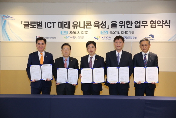 이번 협약은 기술력과 세계 진출 잠재력이 있는 우수 ICT 기업을 선정하고 유니콘 기업으로 성장할 수 있도록 보증, 해외진출 등을 일괄 지원하는 통합체계를 구축하기 위해 마련됐다.