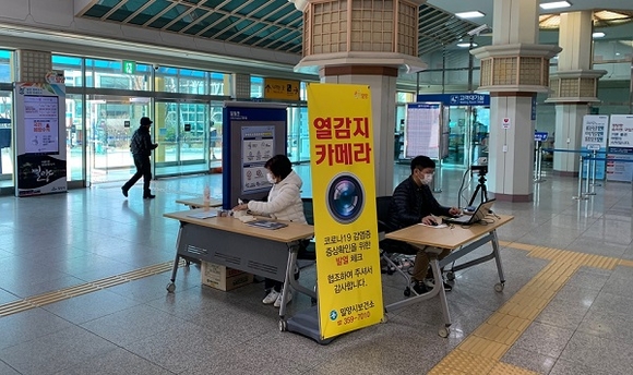 경남 밀양시는 18일부터 유동인구가 많은 밀양역에 열화상 카메라를 설치, 코로나19 예방활동에 총력을 다하고 있다.