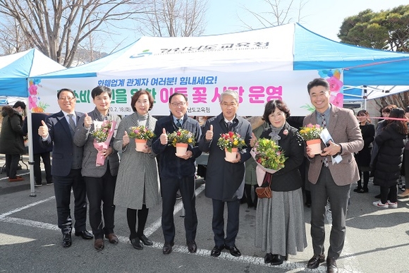 경남도교육청이 18일 도교육청 주차장에서 화훼류 소비 촉진을 위한 꽃 시장을 운영했다.