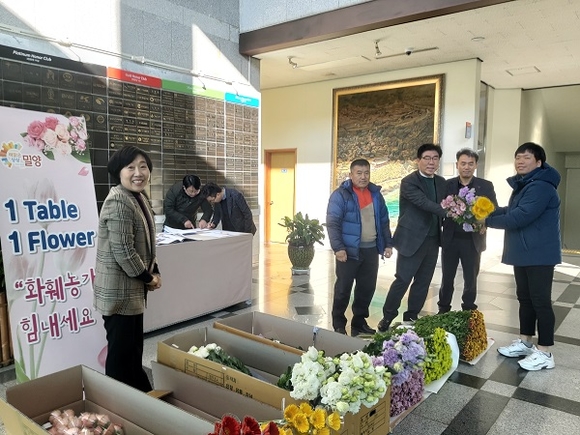 이에 밀양시는 화훼 소비를 촉진하기 위해 ‘1테이블 1플라워’ 사업을 추진한다. 화훼농가의 어려움을 돕고자 밀양시 직원들과 각종 유관기관에서는 사무실과 청사 로비 구내식당 등에 꽃을 배치할 계획이다.
