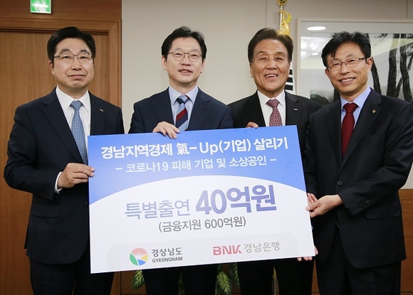 경남도가 '코로나19 피해 소기업‧소상공인'과 '지역 영세 소상공인' 지원을 위해 황윤철 BNK경남은행장과 600억 원 규모의 금융지원 협약을 체결했다.