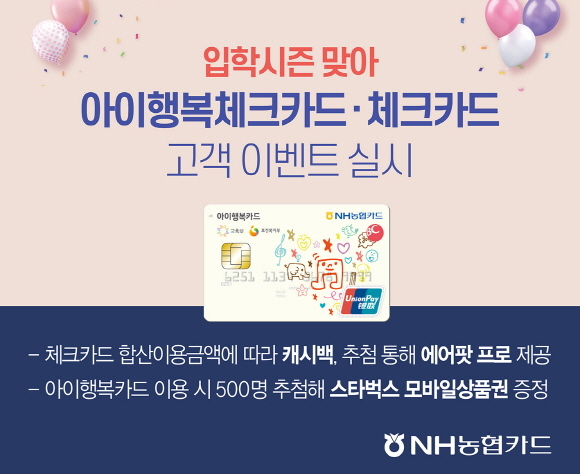NH농협은행 경남영업본부는 입학시즌을 맞아 아이행복카드 사용자 및 체크카드 사용자를 대상으로 푸짐한 이벤트를 실시한다고 21일 밝혔다.